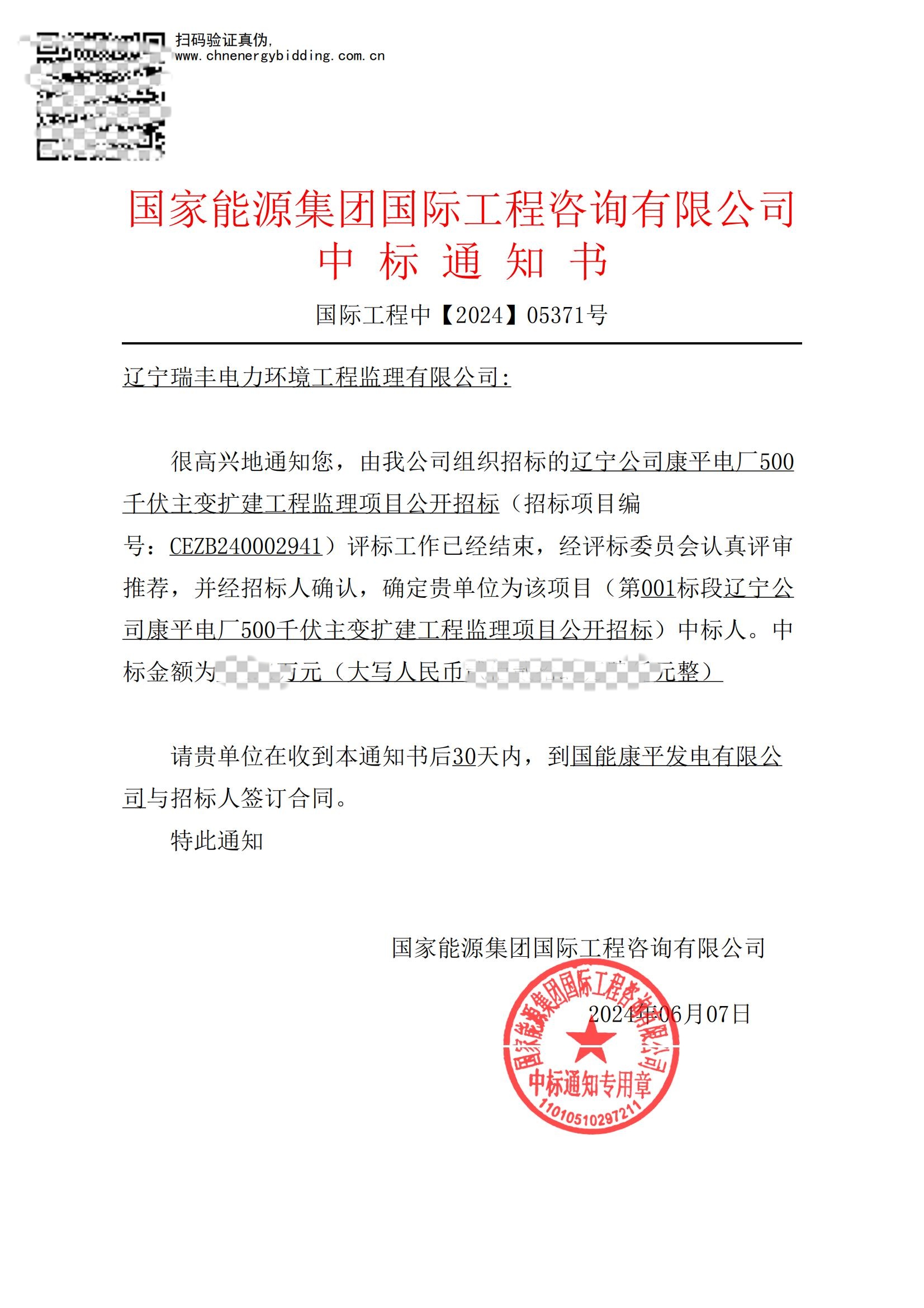 中標(biāo)喜訊-遼寧公司康平電廠500 千伏主變擴(kuò)建工程監(jiān)理