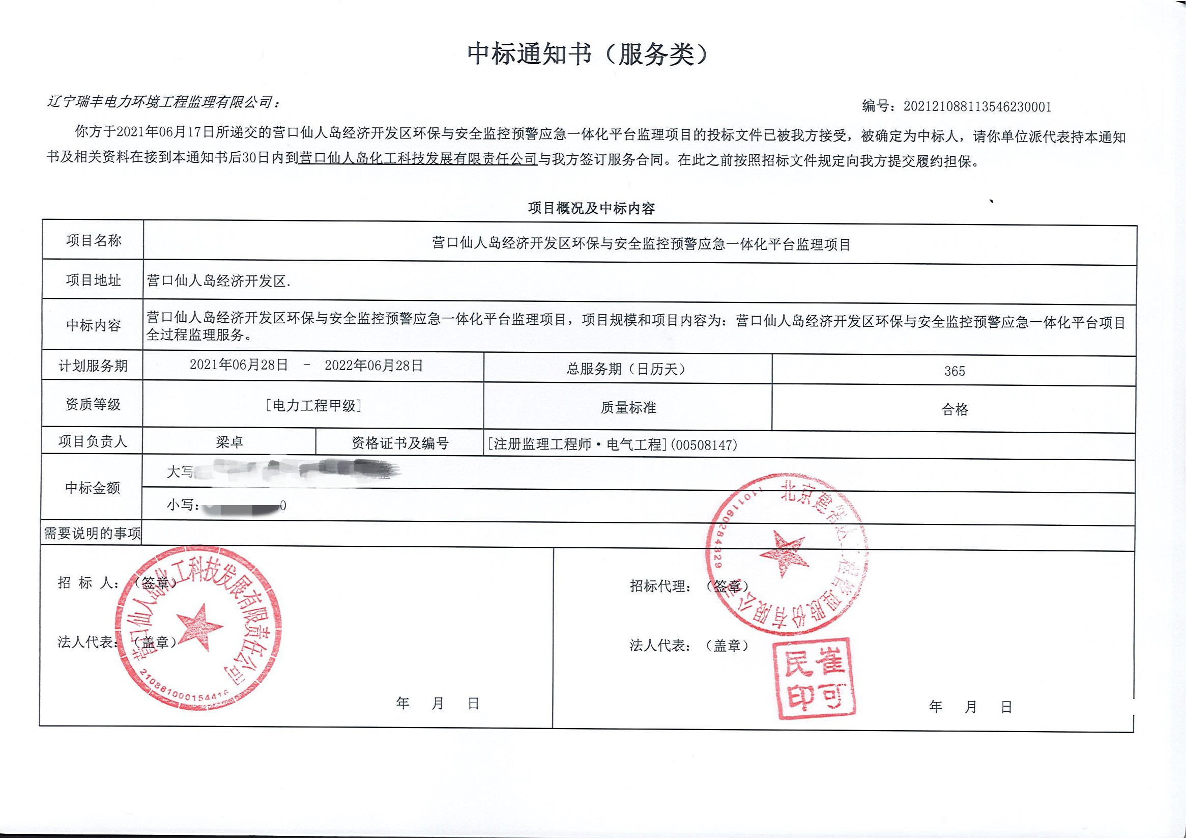 中標(biāo)喜訊-營(yíng)口仙人島經(jīng)濟(jì)開發(fā)區(qū)環(huán)保與安全監(jiān)控預(yù)警應(yīng)急一體化平臺(tái)監(jiān)理項(xiàng)目