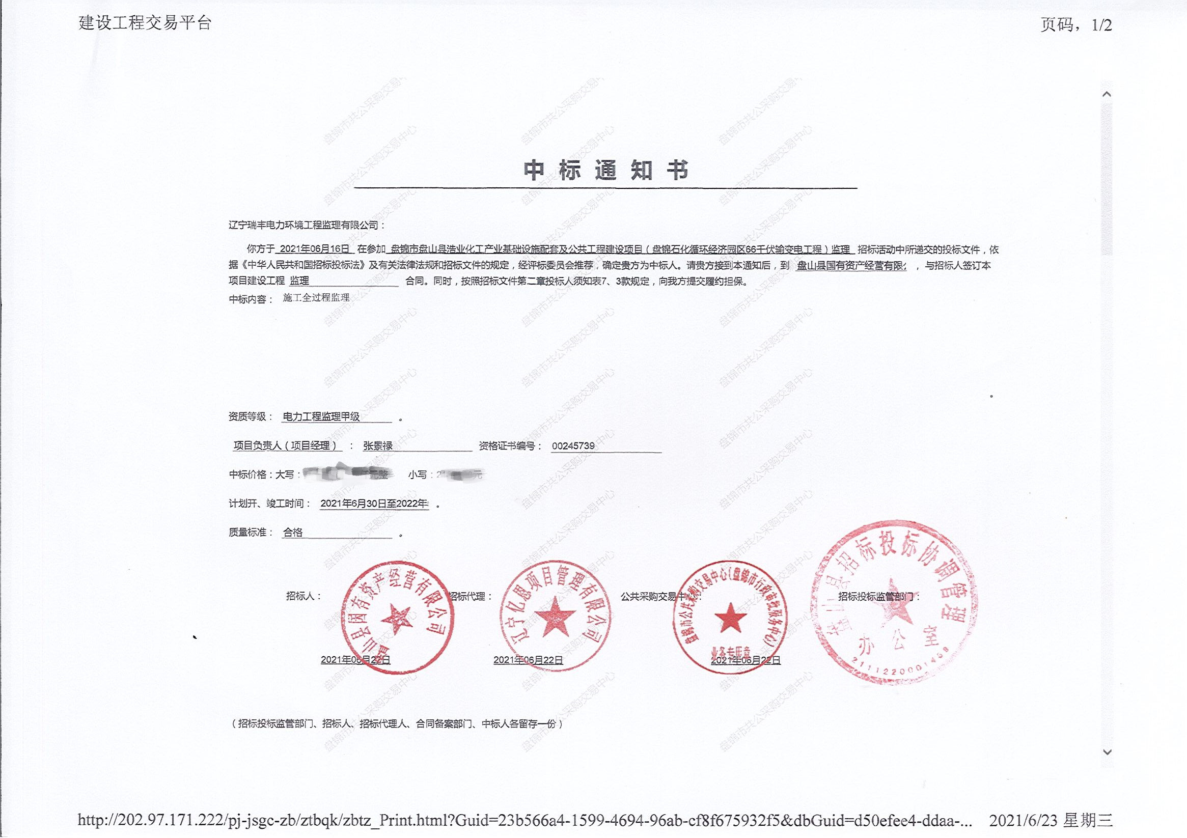中標(biāo)喜訊-盤錦市盤山縣浩業(yè)化工產(chǎn)業(yè)基礎(chǔ)設(shè)施配套及公共工程建設(shè)項(xiàng)目(盤錦石化循環(huán)經(jīng)濟(jì)園區(qū)66千伏輸變電工程)監(jiān)理