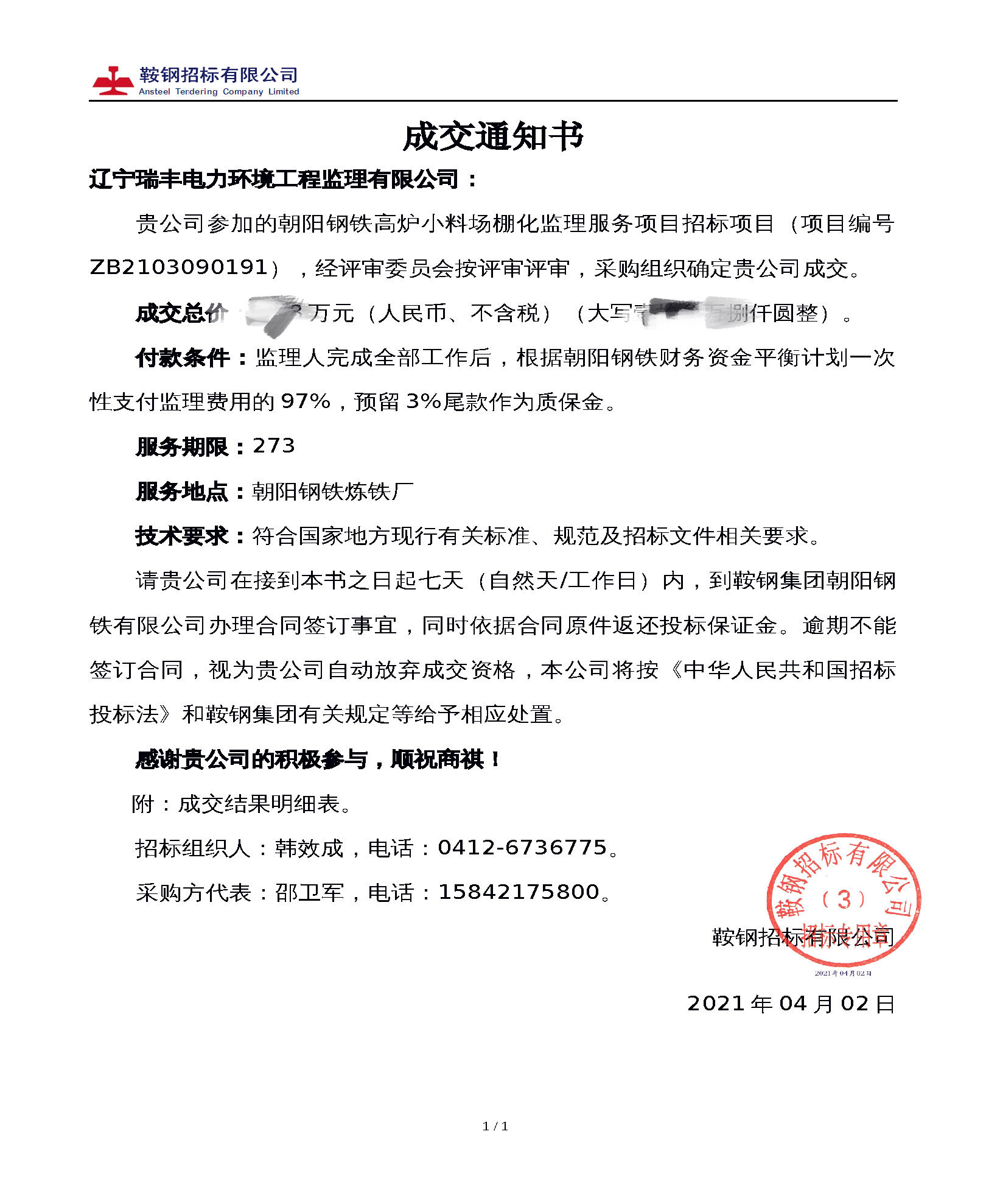 中標喜訊-朝陽鋼鐵高爐小料場棚化監(jiān)理服務項目