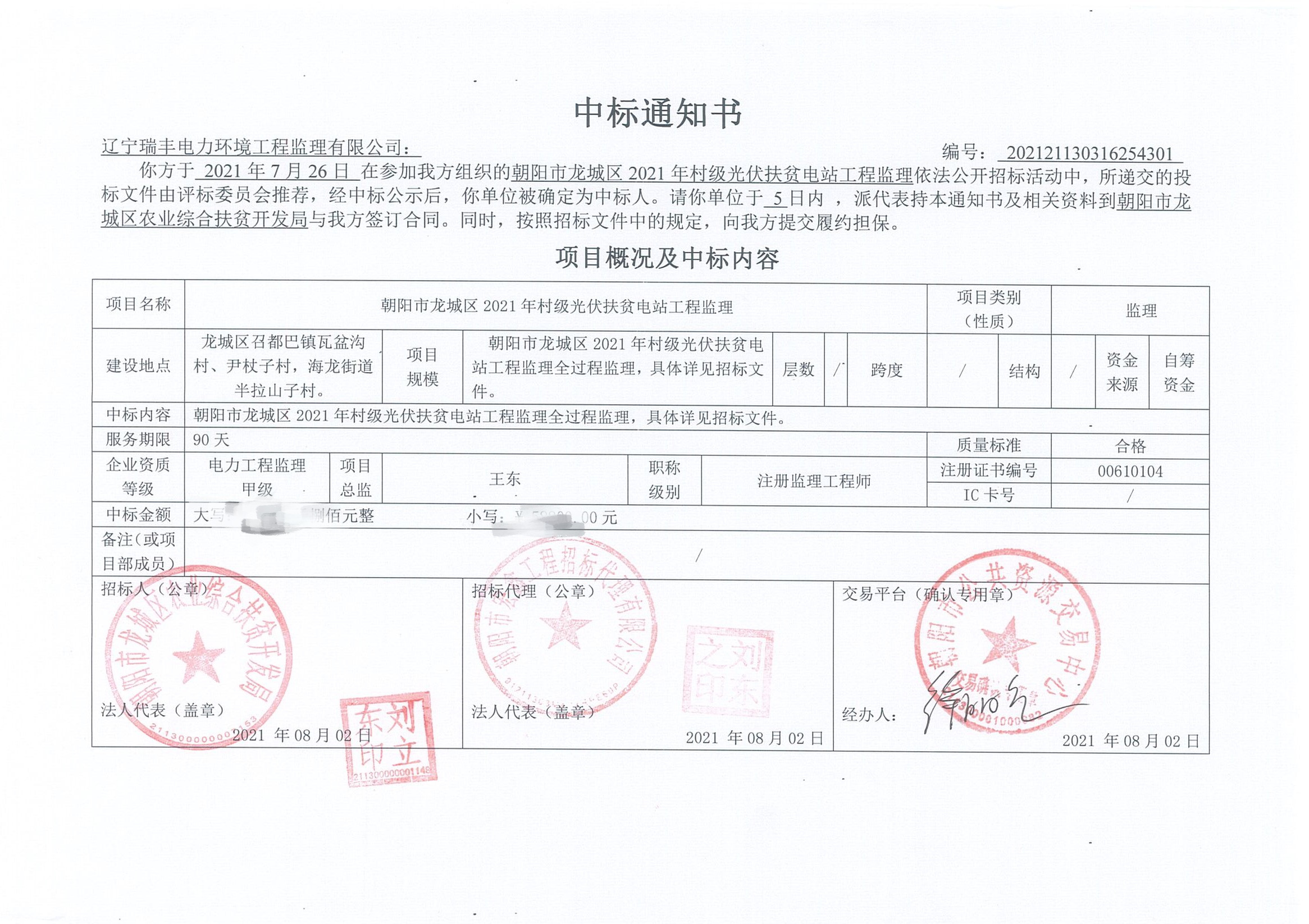 中標(biāo)喜訊-朝陽市龍城區(qū)2021年村級光伏扶貧電站工程監(jiān)理