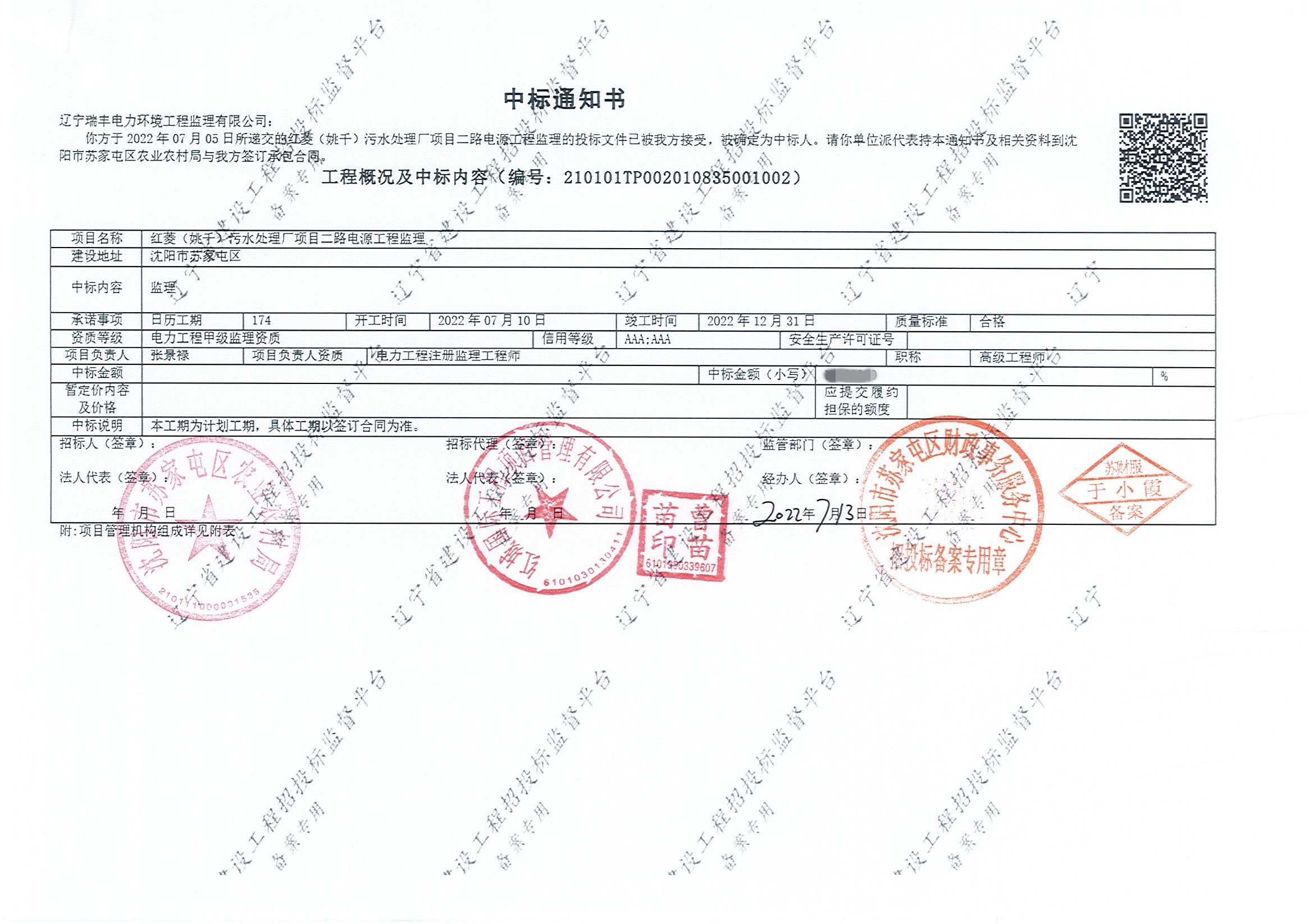 中標喜訊-紅菱(姚千)污水處理廠項目二路電源工程監(jiān)理
