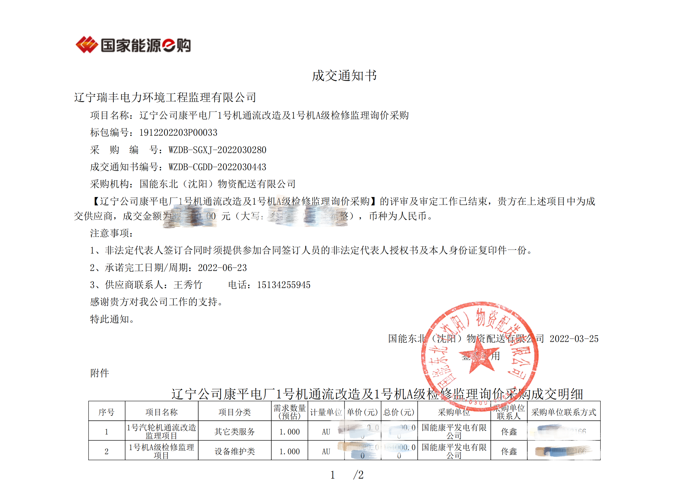 中標喜訊-遼寧公司康平電廠1號機通流改造及1號機A級檢修監(jiān)理
