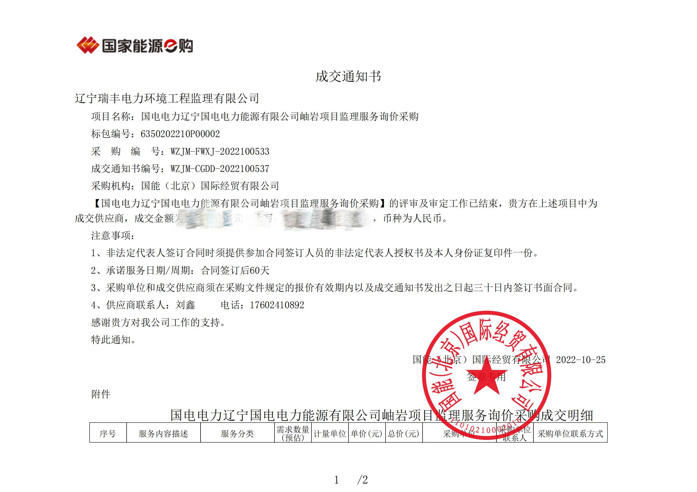 中標(biāo)喜訊-國電電力遼寧國電電力能源有限公司岫巖項(xiàng)目監(jiān)理