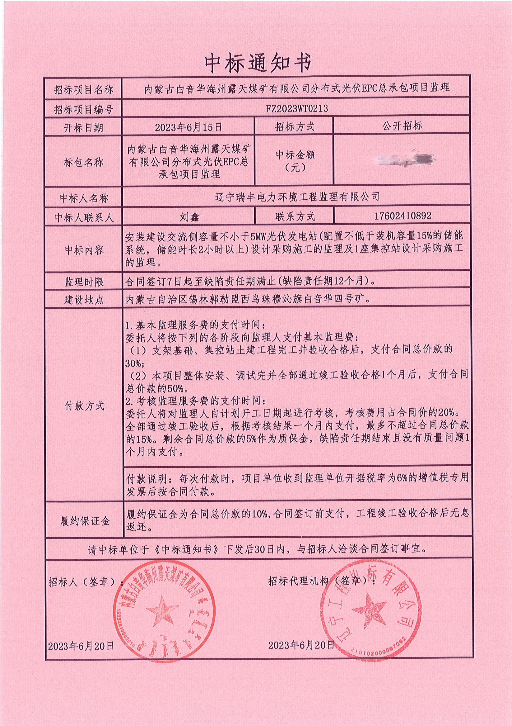 中標喜訊-內蒙古白音華海州露天煤礦有限公司分布式光伏EPC總承包項目監(jiān)理