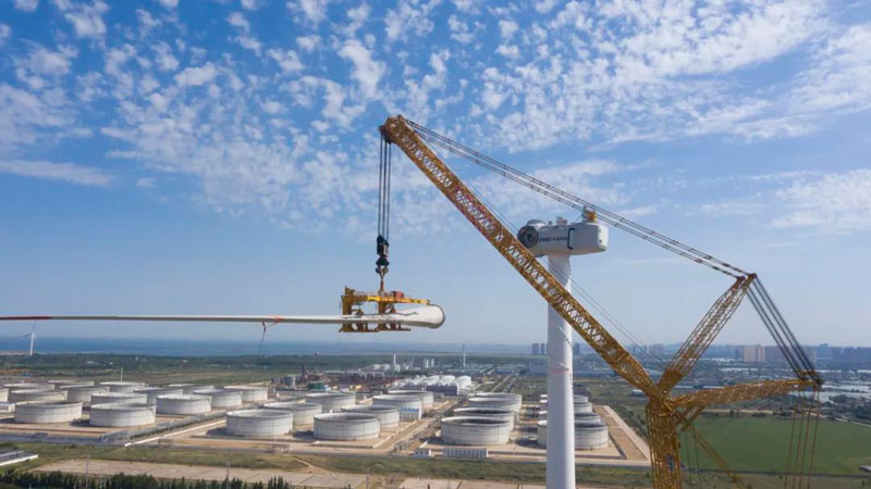 項(xiàng)目安裝全球首臺(tái)下線的18兆瓦海上風(fēng)電機(jī)組,風(fēng)電機(jī)組輪轂中心高度145米,葉輪直徑260米,機(jī)艙凈重約500噸,機(jī)組整機(jī)國產(chǎn)化率高達(dá)99%。