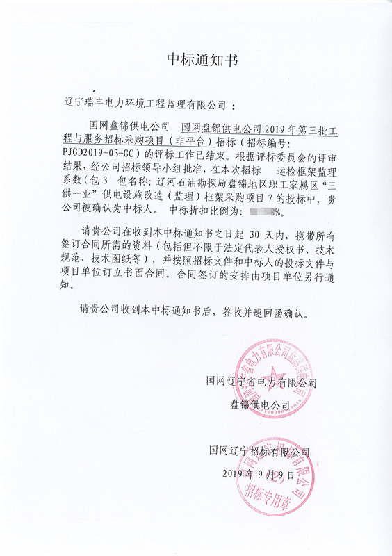 中標喜訊-遼河石油勘探局盤錦地區(qū)職工家屬區(qū)“三供一業(yè)”供電設施改造(監(jiān)理)框架